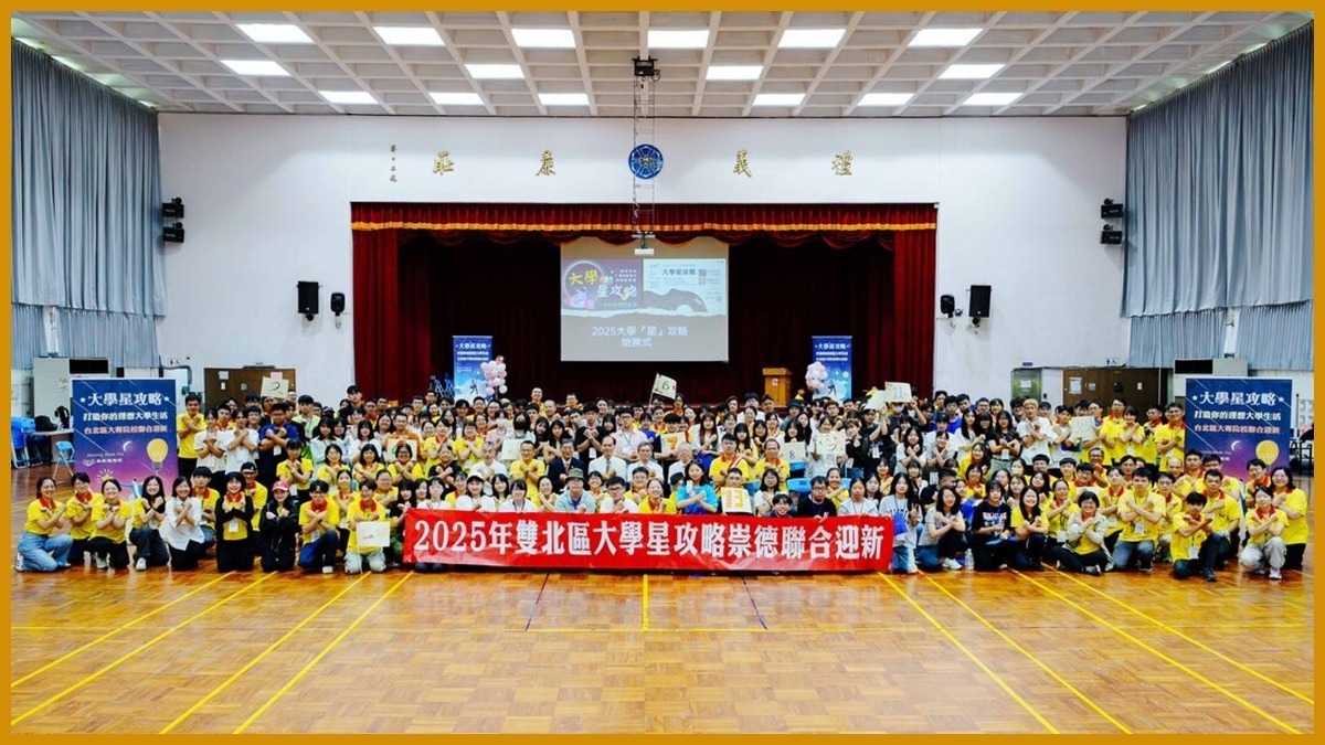 2025年大學星攻略聯合迎新活動,8月31日於師大公館校區中正堂熱情舉辦。一早來自全臺各校的大學新鮮人陸續加入營隊行列,一百多位學員齊聚一堂,在這天展開活力充沛、知性而感性的青春「星」樂章。