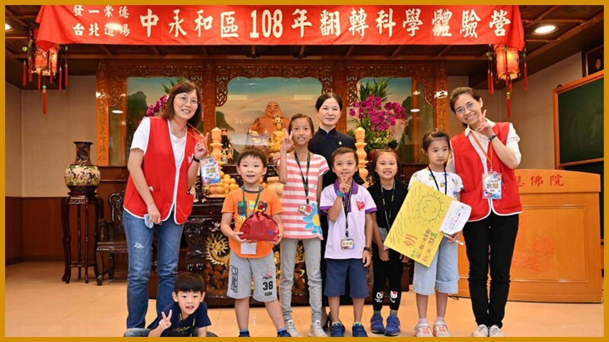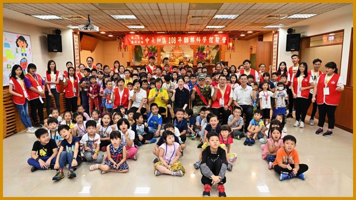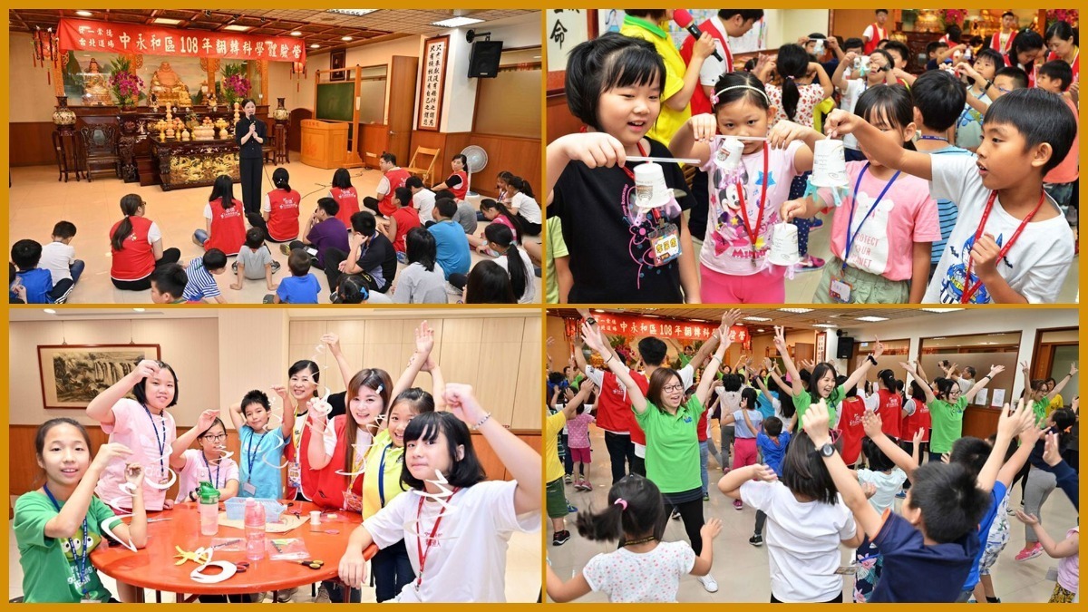 每年暑期營隊是台北道場中永和區小天使班一年一度的重頭大戲,今年規劃以「科學」實體、「品格」為主軸的營隊目標,帶領孩子們從簡單易懂的科學遊戲,體驗自然的奧妙,結合平日所學的4Q精神,充滿飽飽的電力,迎接新學期的到來。