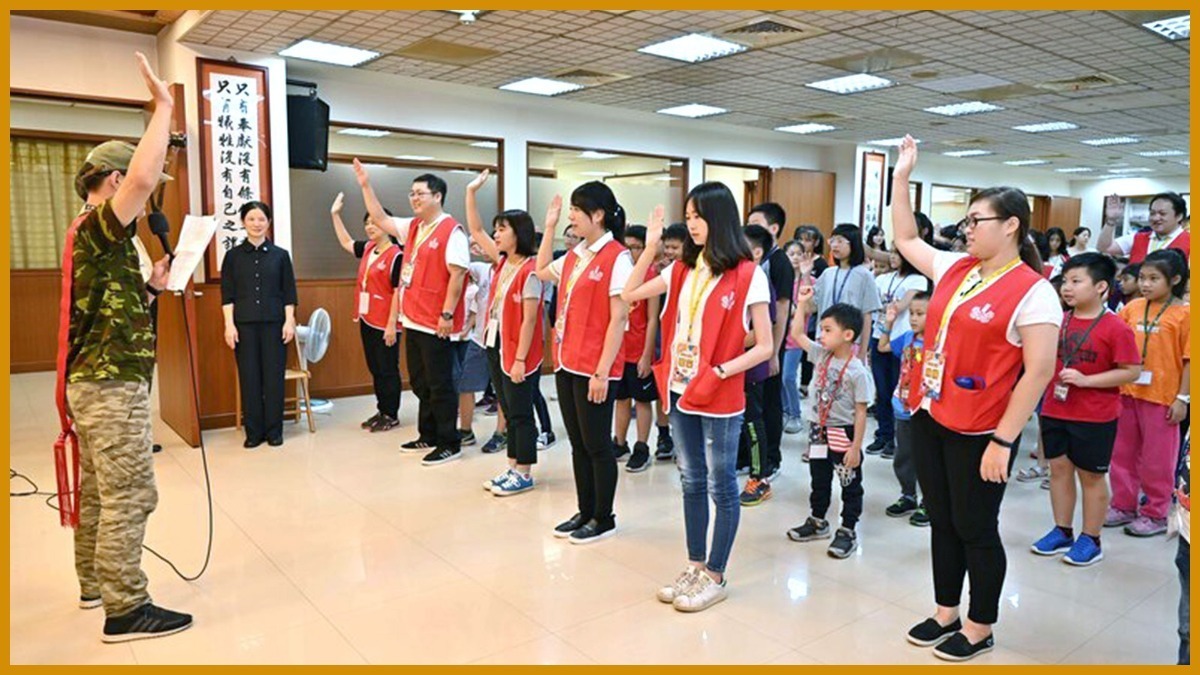 感謝天恩師德,北台灣受利奇馬颱風威脅,讓所有志工忐忑不安幾個夜晚,最終如期舉行,與一百多位小朋友開心相見。在營主任白點傳師的授階儀式與帶領宣誓的值星官吶喊「值星官永遠是對的」,營隊正式起跑。